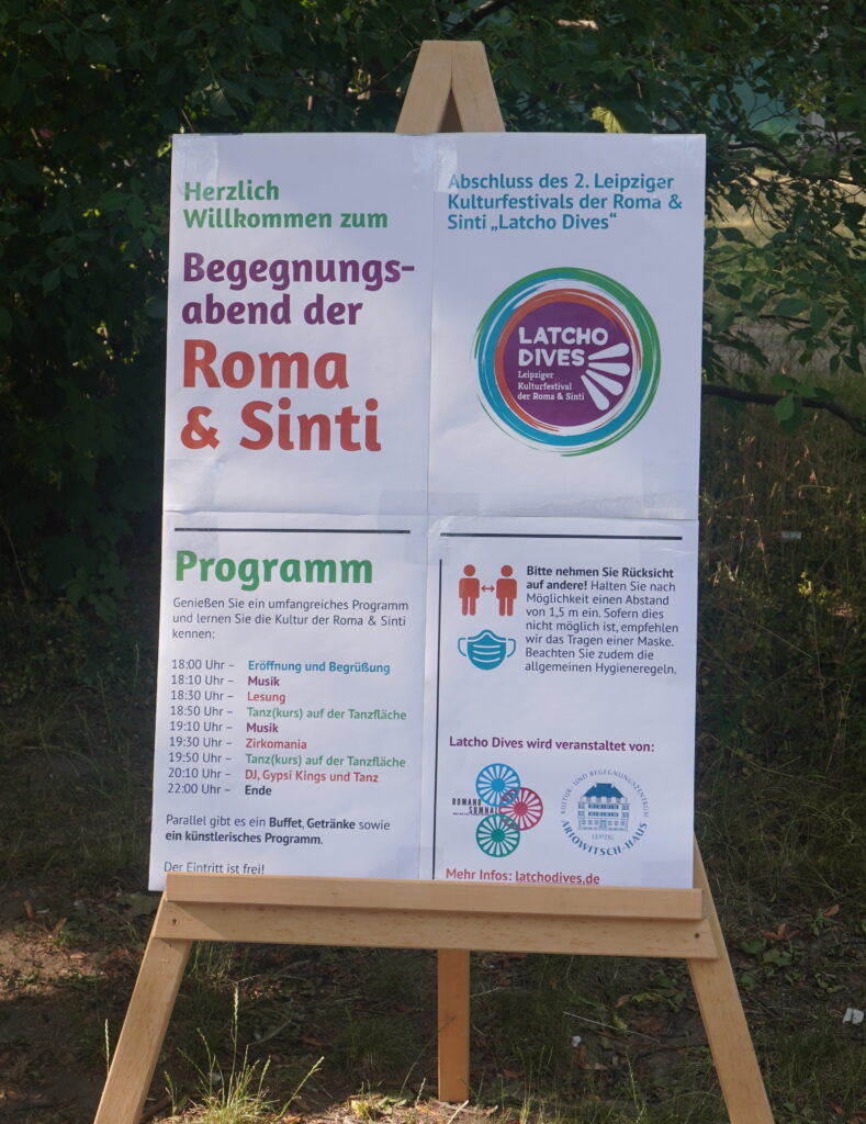 Die Kultur der Roma und Sinti ist ein Teil des reichen kulturellen Mosaiks Sachsens und Leipzigs. Dieses kulturelle Mosaik bringen wir zum Abschlussabend erneut auf die Wiese der Galerie für zeitgenössische Kunst. Nach einem fulminanten Auftakt 2020 laden Leipziger Roma und Sinti wieder zum Musizieren, gemeinsamen Tänzen und vielem mehr ein. Kulinarische Köstlichkeiten bieten die Mitglieder des Romano Sumnal e. V. auf einem großen Buffet an. An unterschiedlichen Stationen auf der Wiese – kleinen kulturellen “Inseln” – werden die inhaltlichen Schwerpunkte der Kulturwoche aufgegriffen und laden zum Kennenlernen und Mitmachen ein.