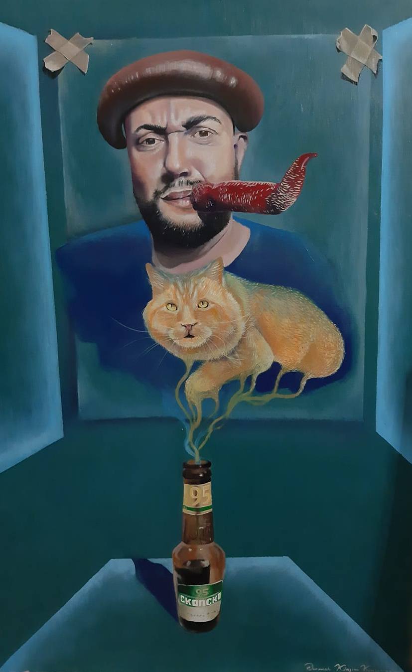 Durmish Kazimeskoro wurde 1983 in Skopje, Nordmazedonien geboren und absolvierte dort die Schule für Angewandte Kunst Lazar Lichenoski in den Fachbereichen Bildhauerei und die Fakultät für Bildende Kunst in der Klasse von Zharko Basheski. Durmish war einer der weinigen Roma-Künstler an seiner Fakultat und gilt auch heute noch als Ausnahmetalent. Seit 2011 lebt Kazimeskoro in Brüssel. In seiner Kunst stimulieren Gedanken und Gefühle die innere Führung zur persönlichen Befreiung und zum Erwachen der Idee. Inspiriert durch Roma und Tradition, durch die er sich selbst darstellt, von Emotionen, Dynamik und Leidenschaft, von dem mit Symbolik verwobenen bildhaften Realismus. Durch die Malerei verteidigt er alle Stereotypen, Vorurteile und Diskriminierung der Roma-Kultur. Er widmet sich offen seinen kulturellen Wurzeln, der Atmosphäre, die auf Kindheit und Diskriminierung verweist, und transformiert und defragmentiert, indem er sich aufrichtig hingibt.