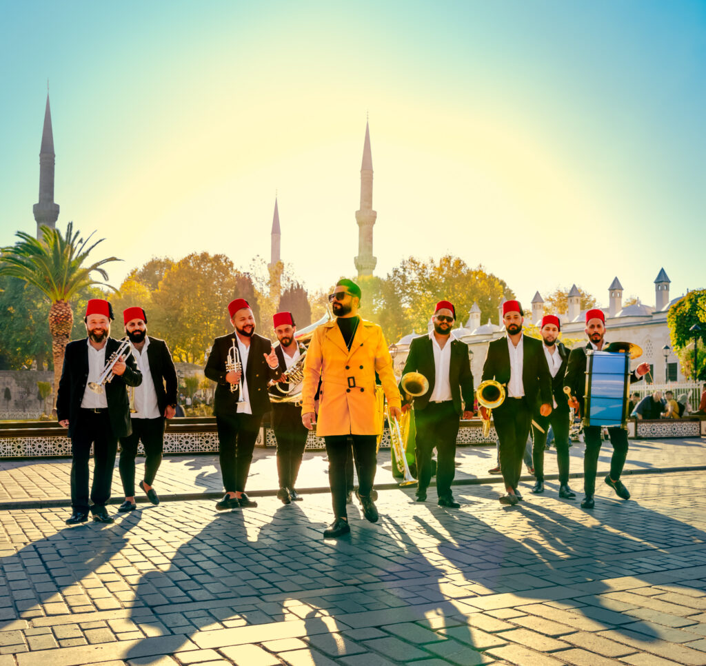 Von bescheidenen Anfängen in der kleinen mazedonischen Stadt Strumica bis zur Eroberung von Bühnen auf der ganzen Welt ist das Dzambo Agusevi Orchestra an die Spitze der internationalen Musikszene aufgestiegen. Dzambo Aguševi, auch bekannt unter dem Spitznamen “The funky Tiger”, ist der berühmteste mazedonische Musiker seit dem verstorbenen Esma Redzepova, aber nicht bereit, sich auf seinen Lorbeeren auszuruhen. Mit “Brasses For The Masses” spielt sich das Dzambo Aguševi Orchestra durch Balkanmusik, Jazz und Funk und nimmt die Zuschauer mit auf eine Reise durch die Welt der Roma auf dem Balkan gestern, heute und morgen. Das 10-köpfige Dzambo Aguševi Orchestra spielt mit einer Wucht, die ihresgleichen sucht: die Hörner treiben, der Beat stampft, die Tuba tanzt und Džambo’s orientalisch klingenden Trompetensoli entführen die Zuschauer in ferne Welten. Was vor kurzer Zeit noch als Insider-Tipp begann, ist nun zum lebendigen Beweis geworden, dass Blasmusik nach wie vor in die Beine gehen kann.